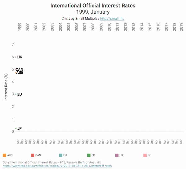 We plotted 20 years of global interest rate data from the Reserve Bank of Australia in one chart: