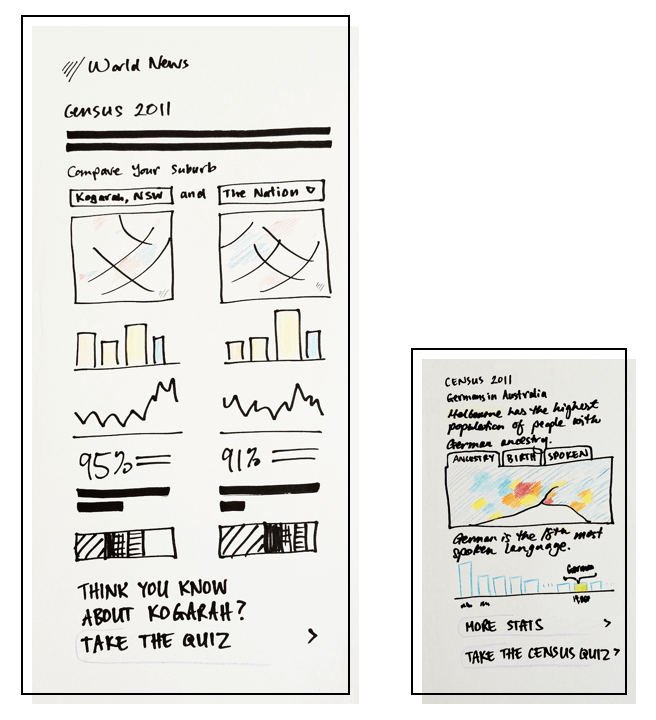 The visualisations show statistical analysis about the people who live in Australia. Users personalise their experience by choosing their native language and location to compare themselves with other people on a wide variety of metrics.