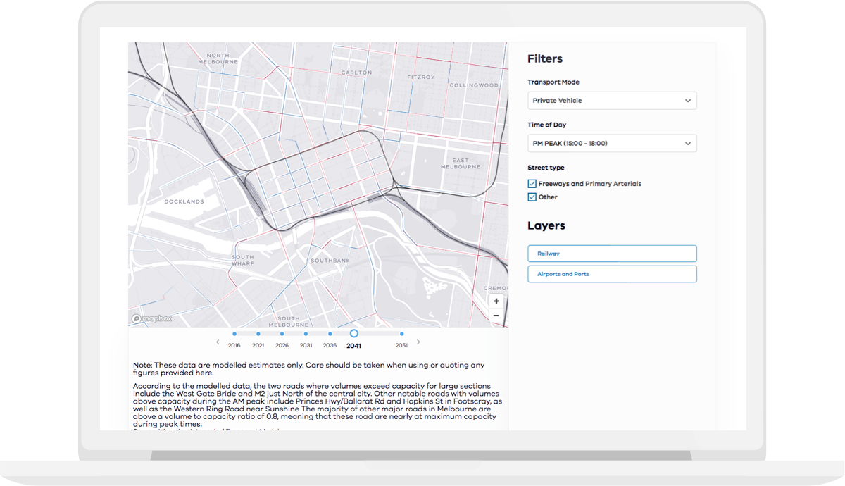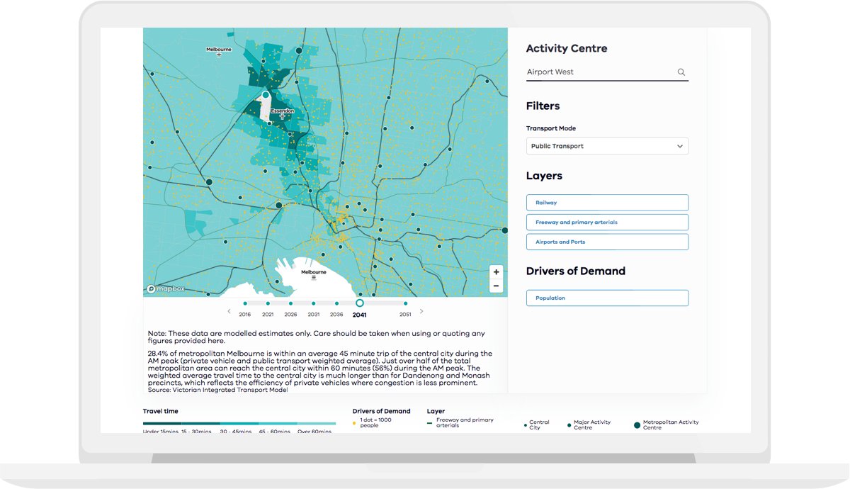 We have been working closely with Transport for Victoria over the past year to create an internal data visualisation portal, helping them to track progress against their strategy and to plan and foresee future growth on all transport networks.